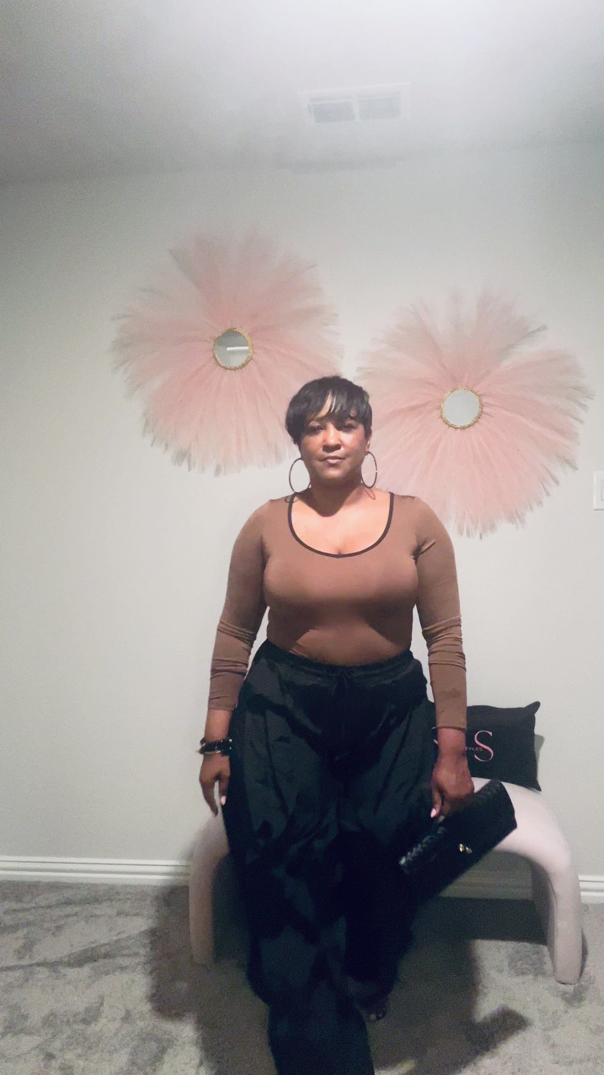 Upgrade your wardrobe with the Mocha Sculpt Bodysuit. In a sophisticated mocha color with classic black trim, this long-sleeved bodysuit not only flatters your figure but also provides ultimate comfort with its stretchy fabric. Perfectly pair it with our Rogue Flow Pants for a polished and stylish ensemble.